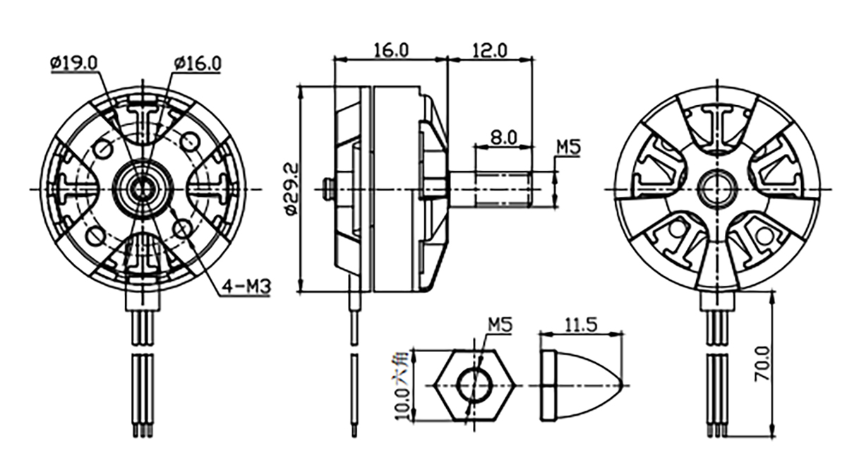 Трехфазный бесколлекторный мотор с внешним ротором, конструкция 12N14P, ориентирован на высокую тягу, длительное время работы и низкий уровень шума; подходит для тяжелых дальних полетов и профессиональной кино- и телеаэросъемки.