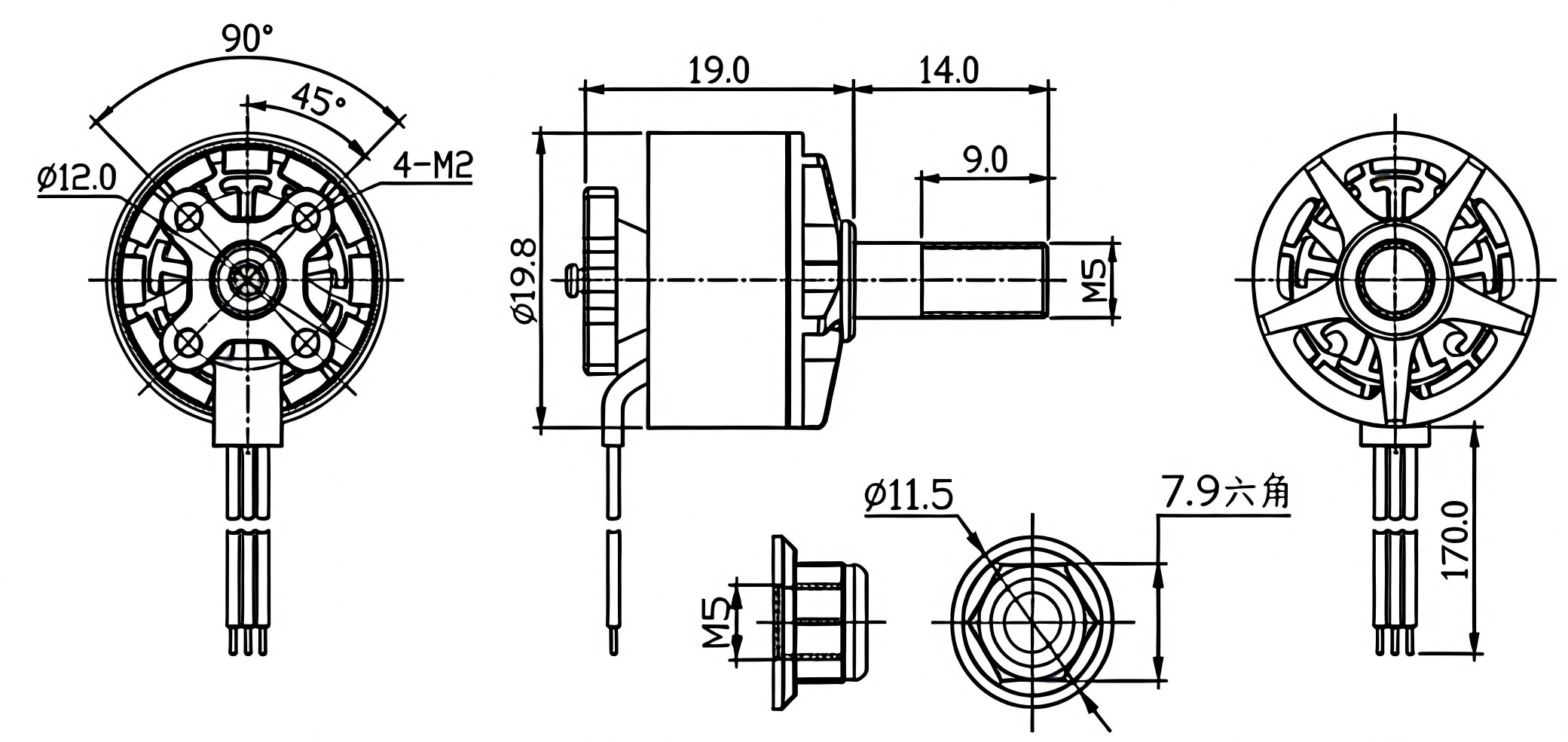 | Model | KV Value | Maximum Power | Maximum Current | Pull | Efficiency | Propeller | Battery Lipo Cells | ESC | |