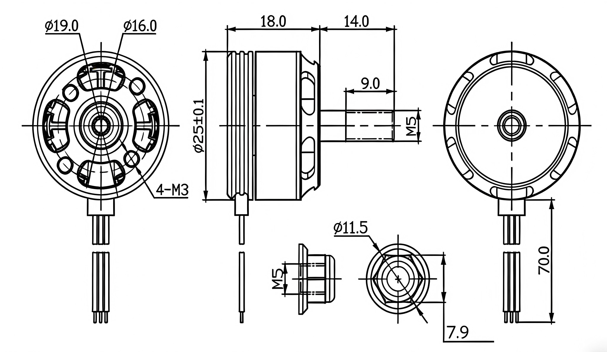 | Model | KV Value | Maximum Power | Maximum Current | Pull | Efficiency | Propeller | Battery Lipo Cells | ESC | |