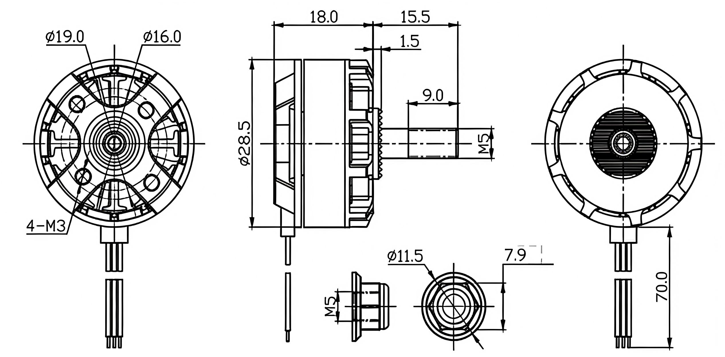 | Model | KV Value | Maximum Power | Maximum Current | Pull | Efficiency | Propeller | Battery Lipo Cells | ESC | |