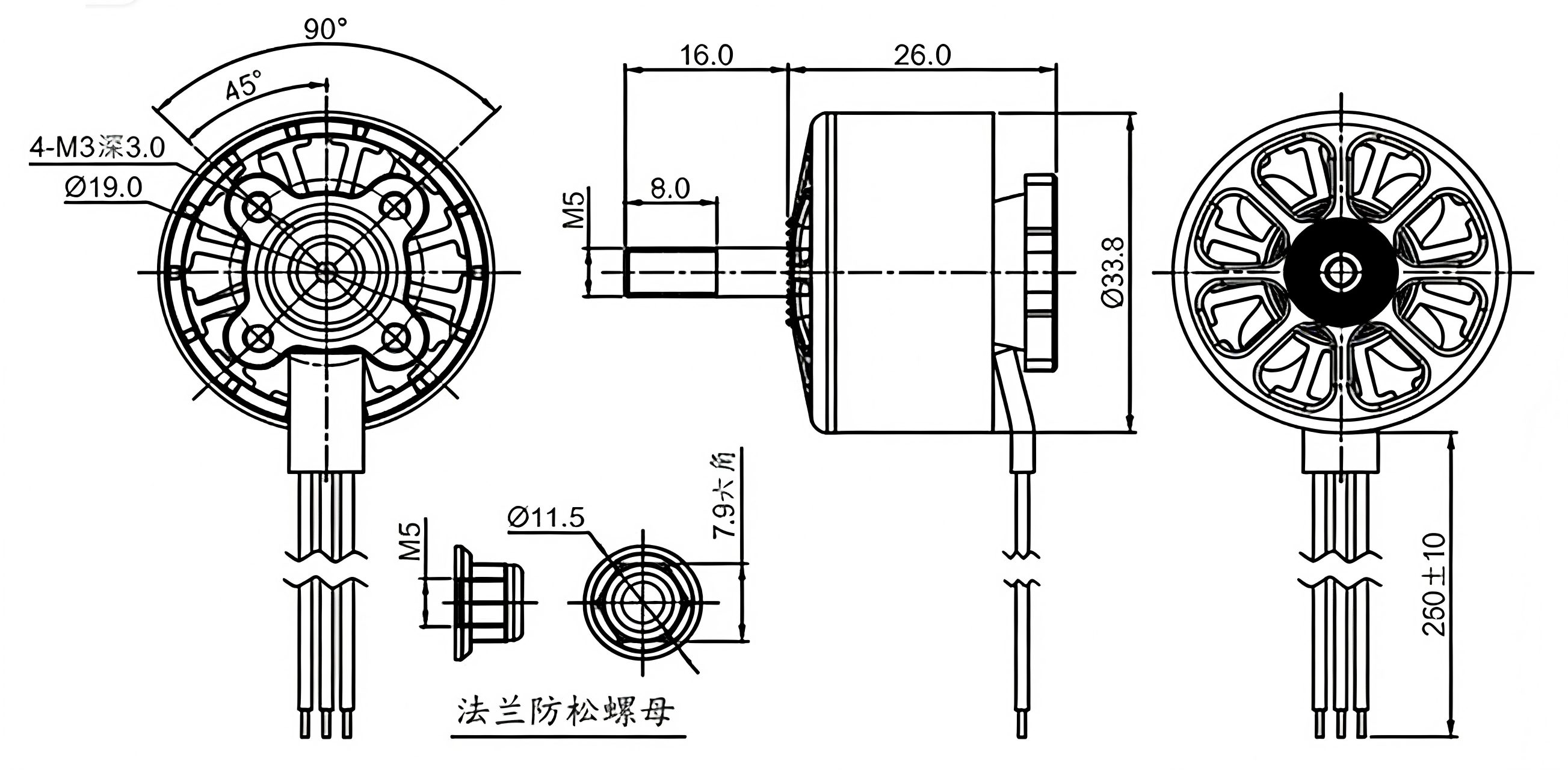 Трехфазный бесколлекторный мотор с внешним ротором, конструкция 12N14P, ориентирован на высокую тягу, длительное время работы и низкий уровень шума; подходит для тяжелых дальних полетов и профессиональной кино- и телеаэросъемки.