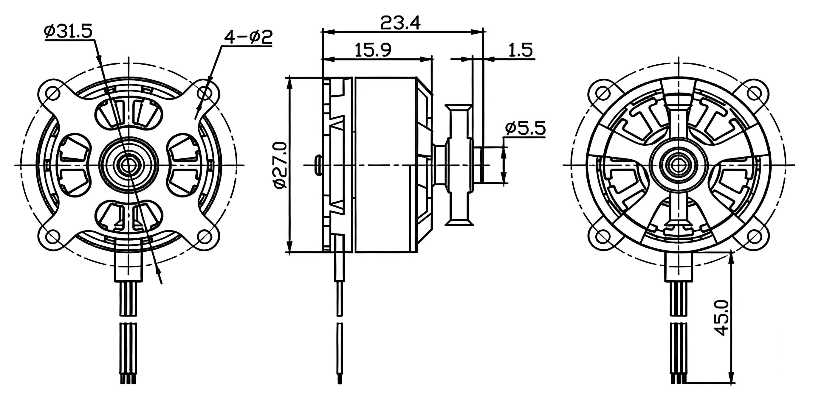Увеличенная высота статора позволяет мотору создавать более высокий крутящий момент, что позволяет ему работать с гребными винтами с большим шагом и более тяжелыми нагрузками с большей эффективностью.