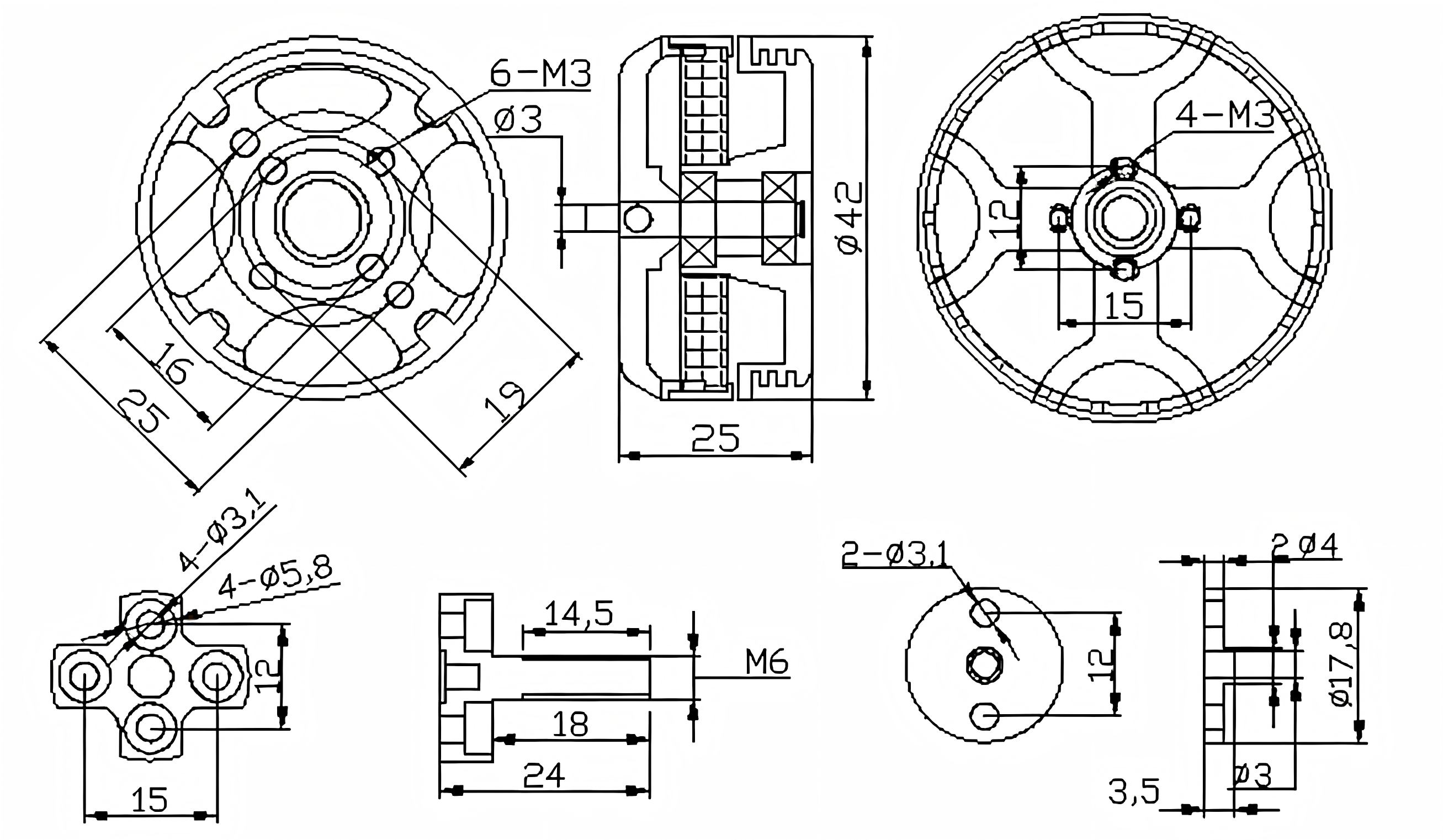 | Model | KV Value | Maximum Power | Maximum Current | Pull | Efficiency | Propeller | Battery Lipo Cells | ESC | |