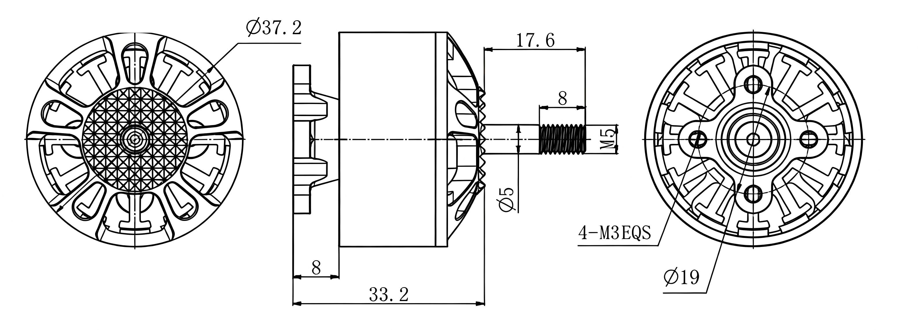 | Model | KV Value | Maximum Power | Maximum Current | Pull | Efficiency | Propeller | Battery Lipo Cells | ESC | |